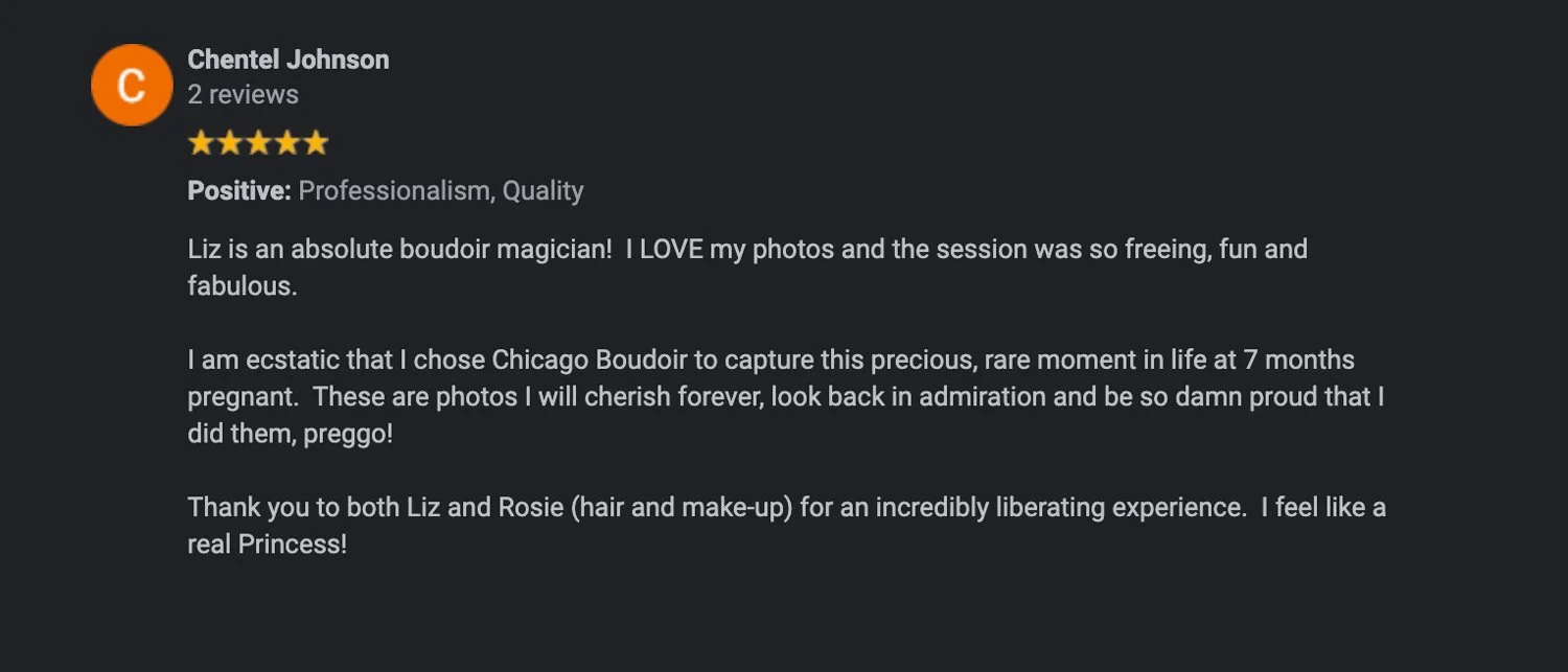 REAL reviews - Chicago Boudoir Photography studio - Winnetka, IL