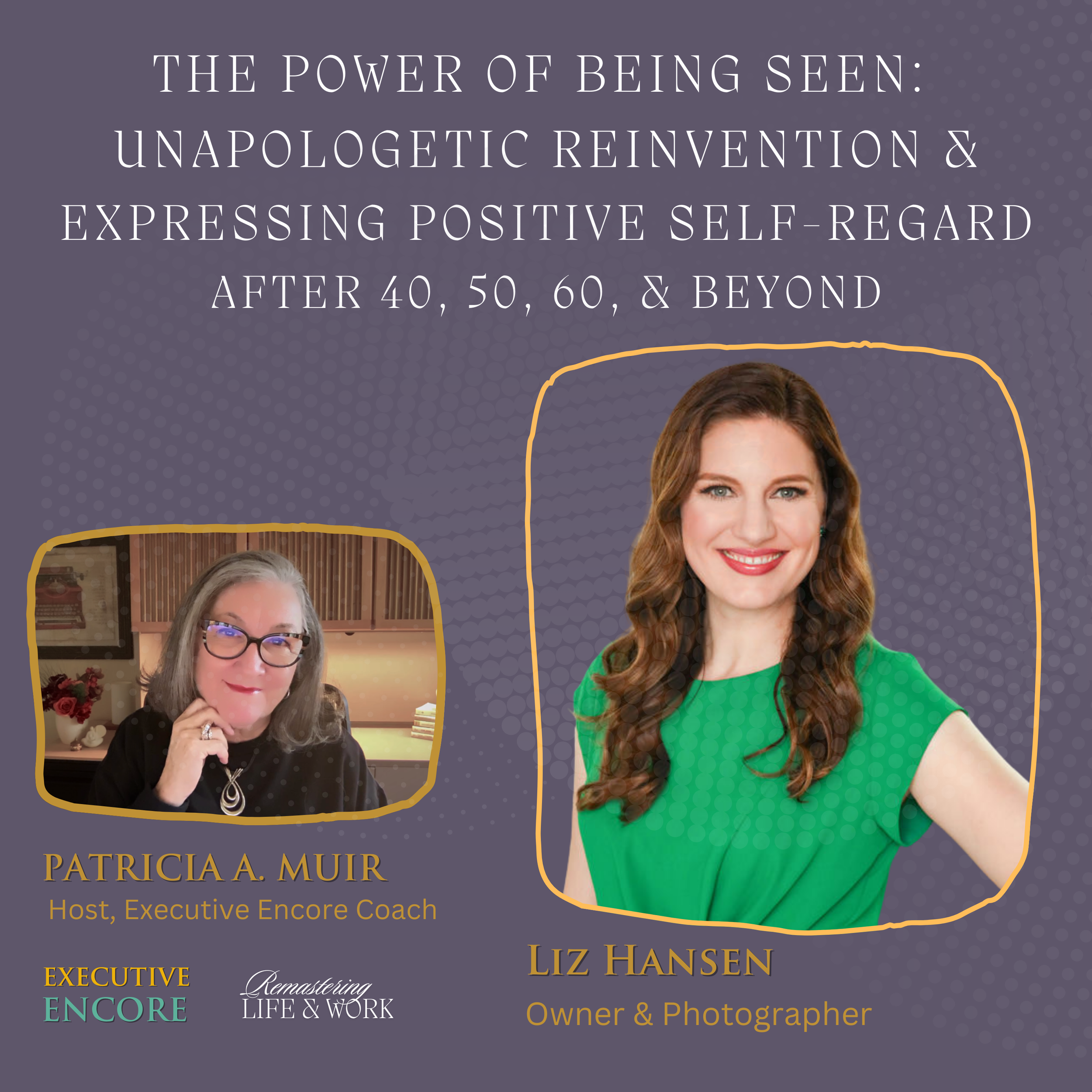 Recently, I had the honor of being a guest on the Executive Encore podcast, hosted by Patricia Muir. Our conversation dove deep into two themes that are very close to my heart: women’s reinvention and the life-changing power of boudoir photography.