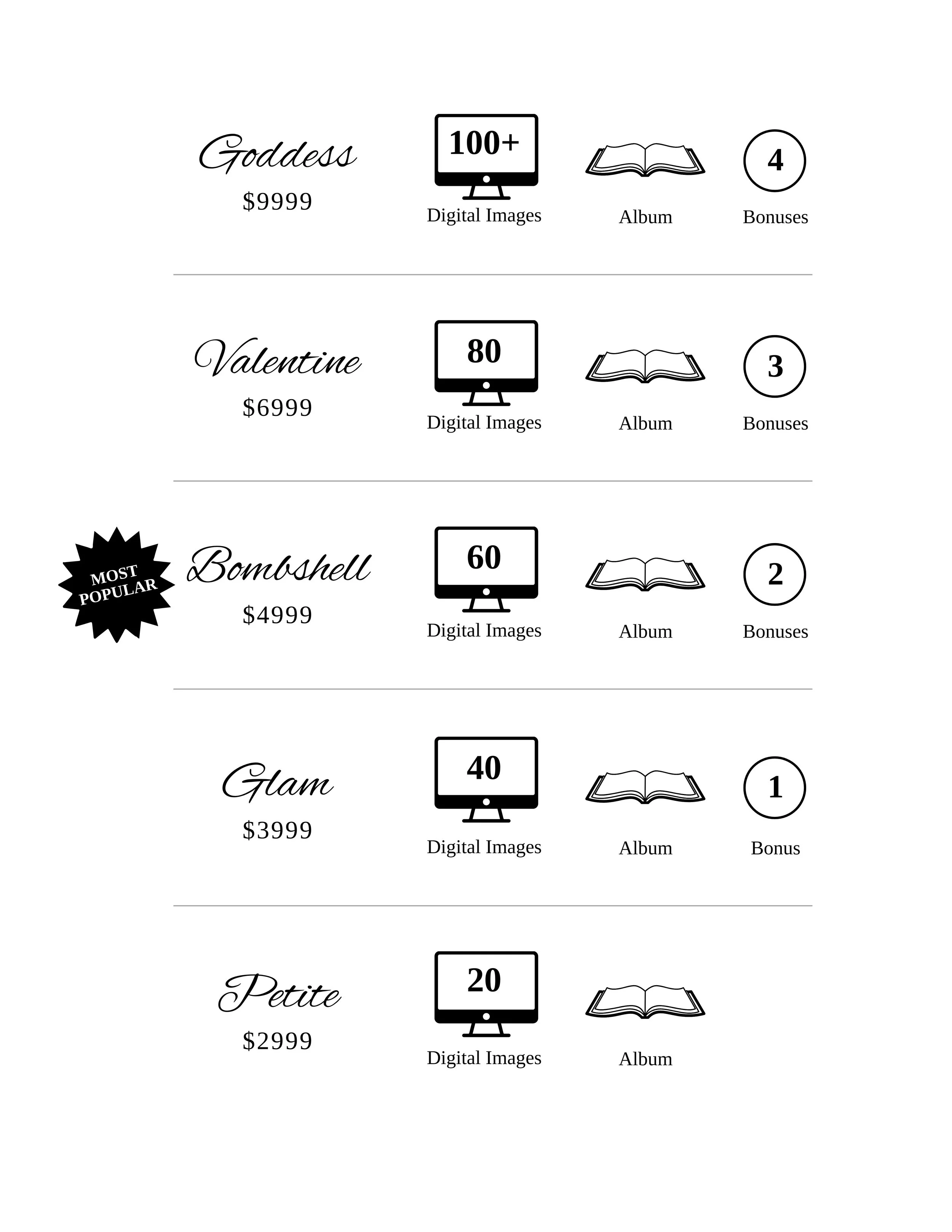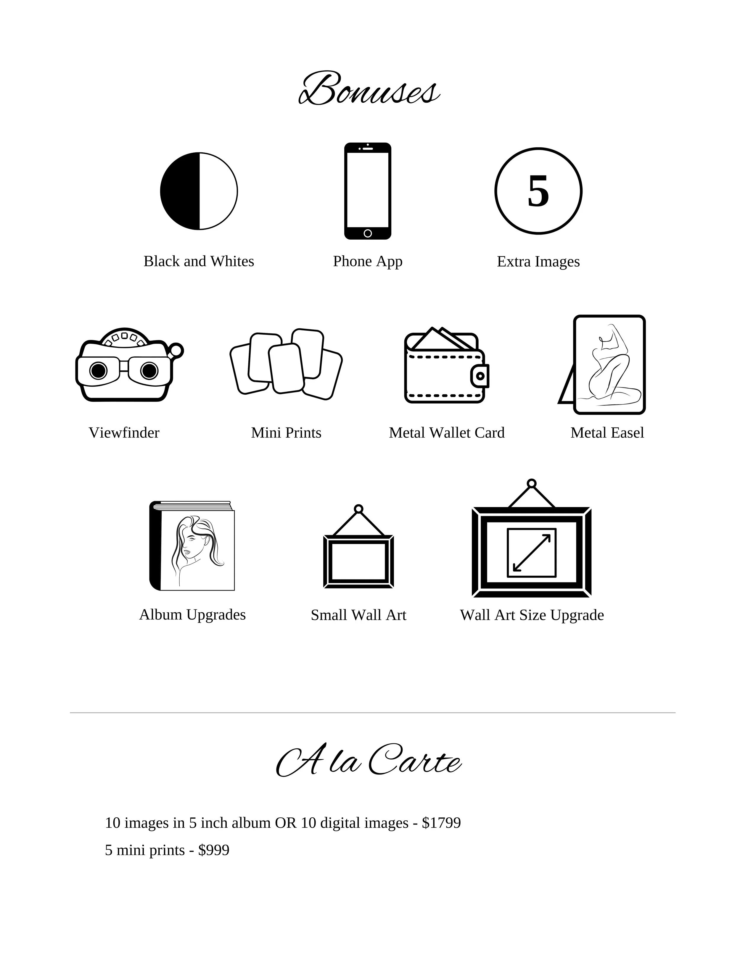 Plan to purchase a photo collection on the day of your shoot. We have samples of all of the photo products at the studio.